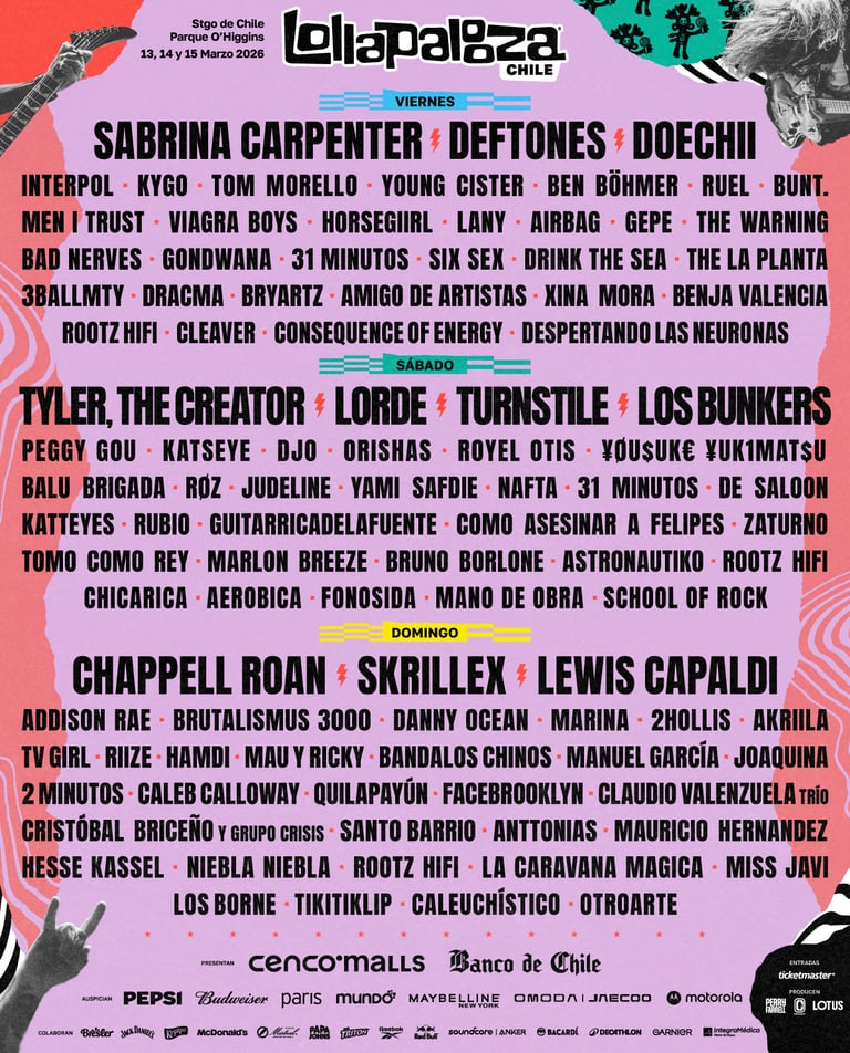 Estos son los artistas que lideran cada jornada de Lollapalooza Chile 2026