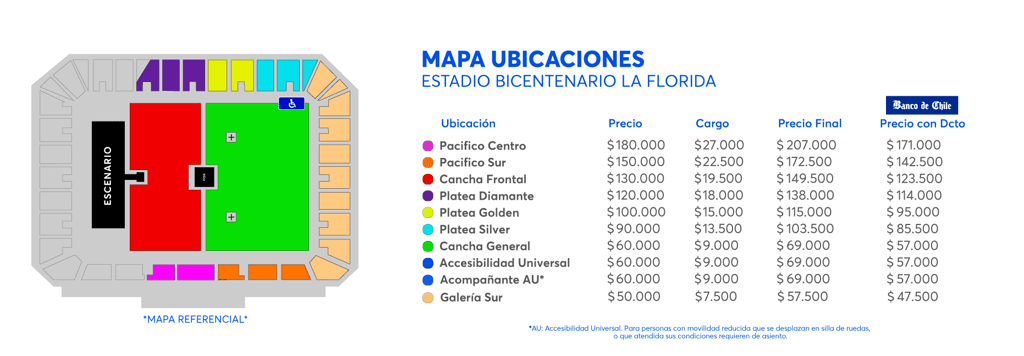 El concierto en Chile será producido por Lotus y las entradas ya se encuentran disponibles a través de Ticketmaster. Estos son los precios y las ubicaciones para el concierto: